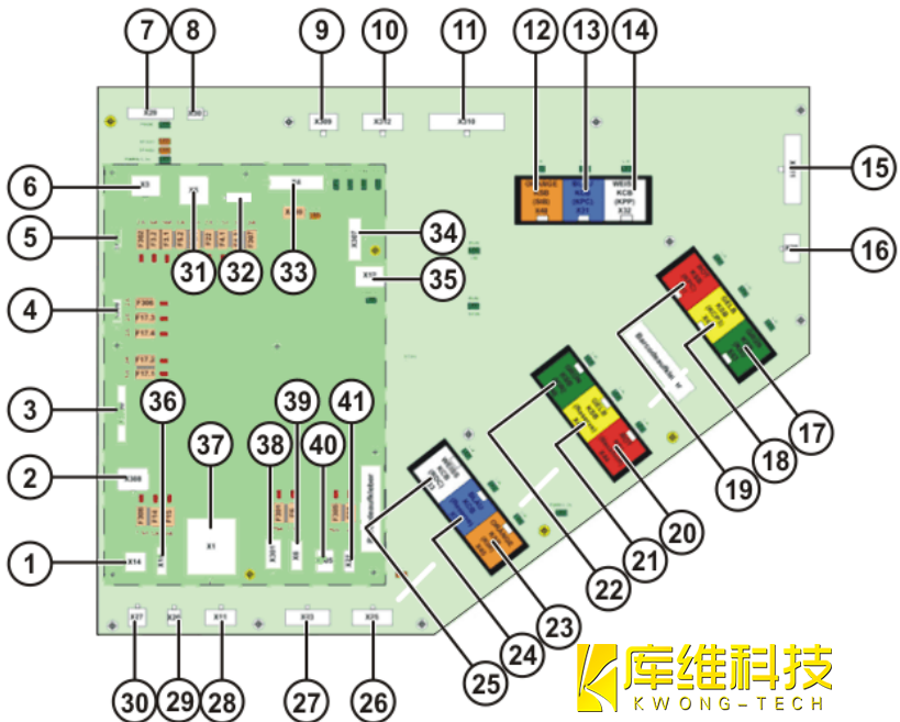 控制柜 (CCU)包含兩塊電路板 (CIB 控制柜接口板和 PMB 電源管理板),是機器人控制系統所有組件的配電裝置和通訊接口. 所有數據通過內部通訊傳輸給控制系統,并在那里繼續處理. 當電源斷電時,